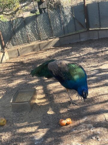 白い孔雀の他にも、色鮮やかなインドクジャクもいました!おみかん食べてました🍊