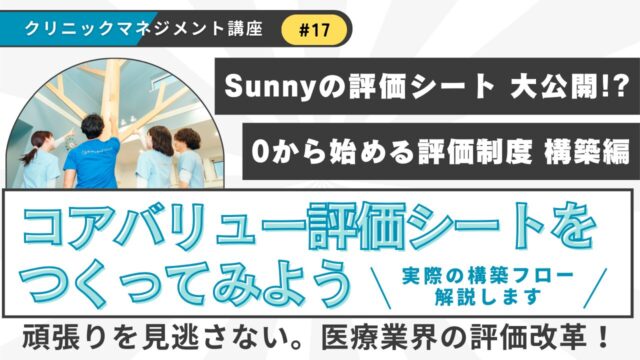 小児科コラムいつも医療法人社団Sunnyの取り組みにご関心をお寄せいただき、誠にありがとうございます。今回は【0から始める評価制度】として、Sunnyが実際にどのように評価制度を作り上げてきたのか、そのプロセスと、運用の中で大切にしている考え方を、Yo...