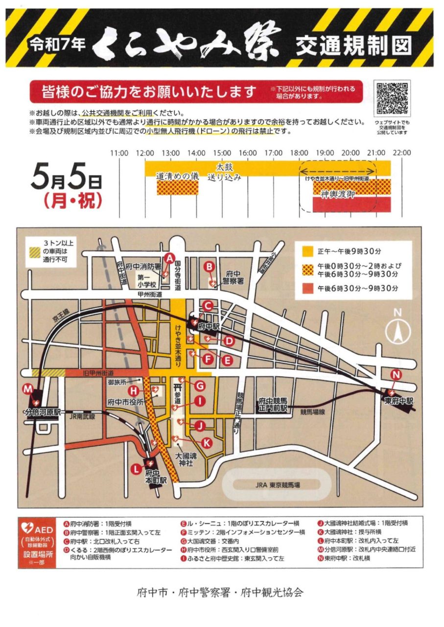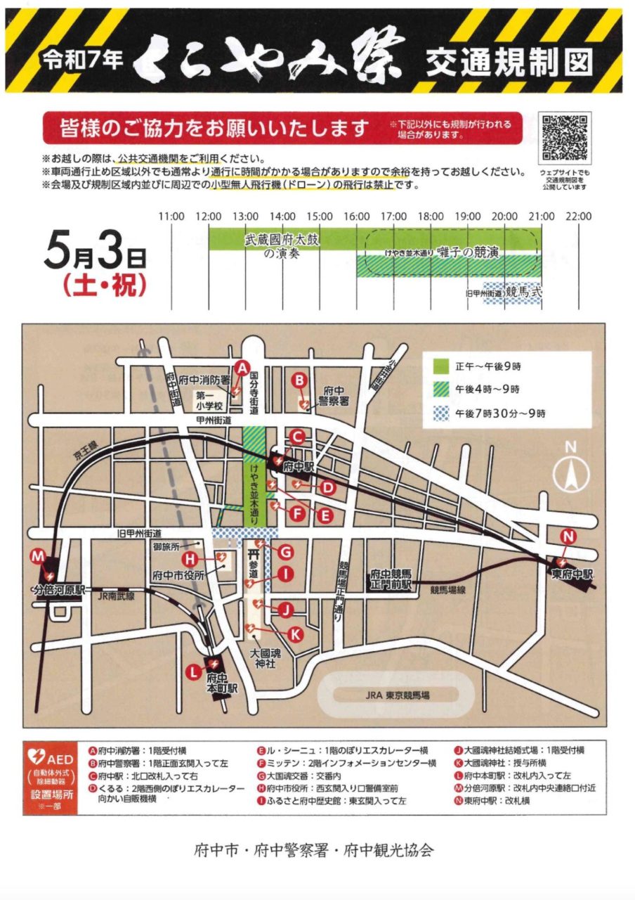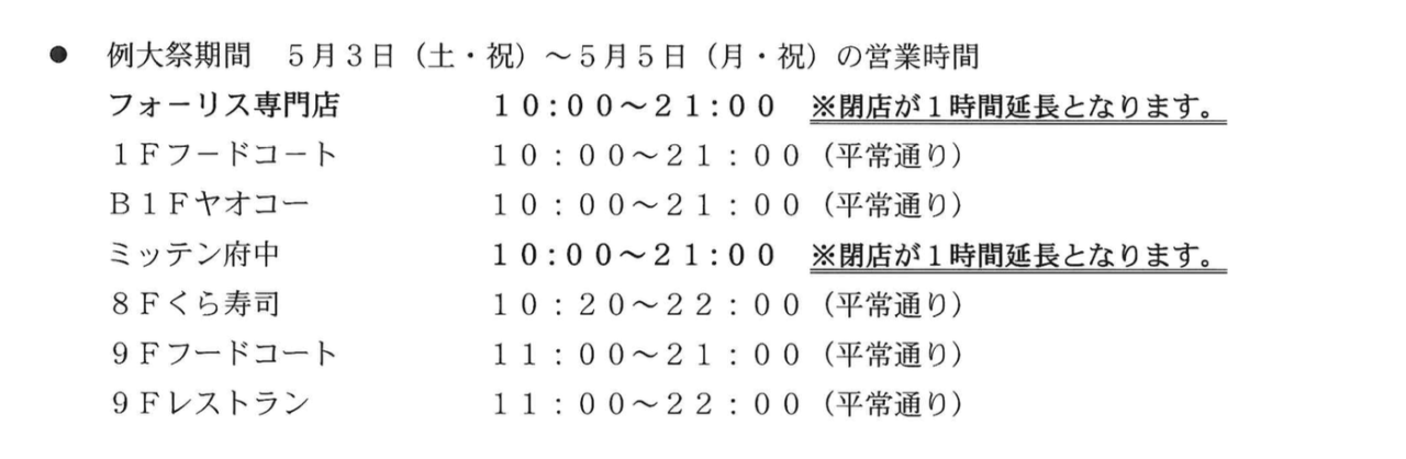 大國魂神社例大祭に伴い、フォーリスの営業時間の変更や大幅な交通規制が実施されます。