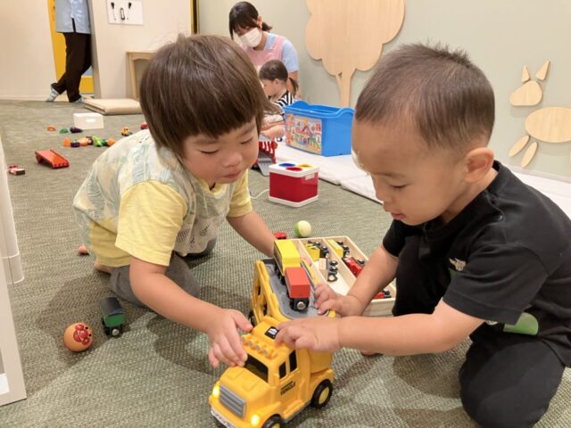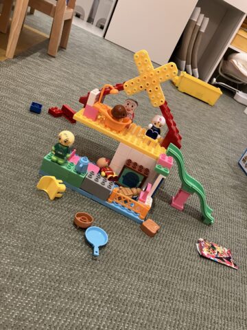 年齢の大きい子はレゴやブロックなどを自分で組み立て、完成したものを自慢げに見せてくれたり、「いっしょにあそぼう」と他のお友達と遊んだりする姿がみられます!
