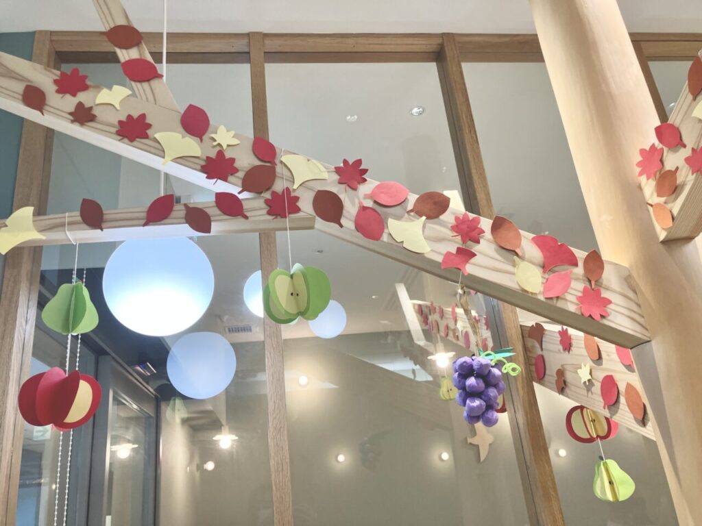 同じ職員ながら拍手を送りたくなるような装飾が出来上がっています🍎 🍇 🍁