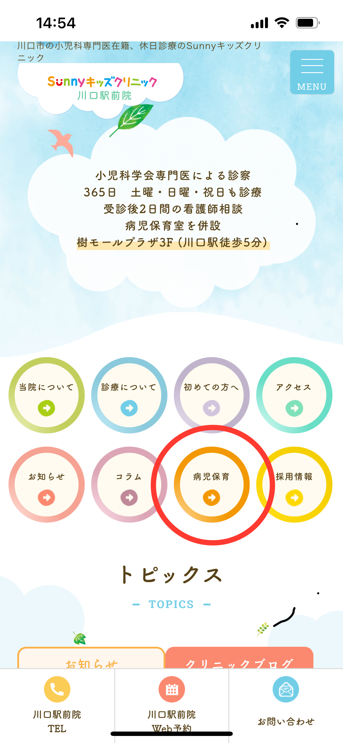 実はSunnyキッズクリニックのHP内、「病児保育」のページにあります。
