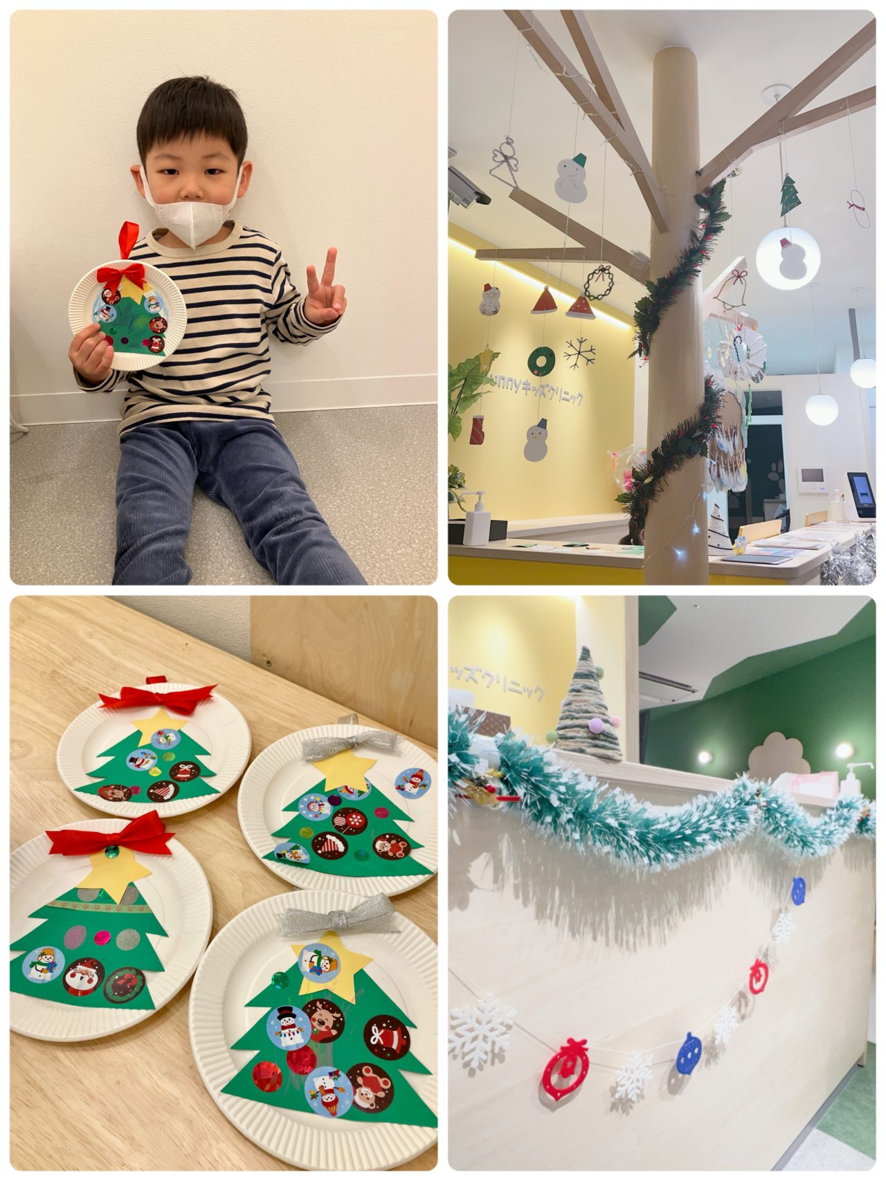 その他、待合には雪の結晶や先生が作ったツリーが、処置室の壁には病児を利用してくれたお友達が作った雪だるまが飾ってあります⛄️