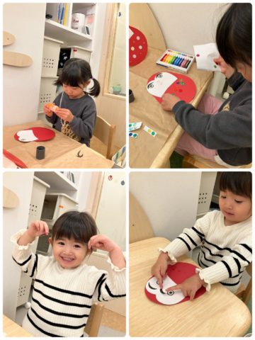 目の位置や眉毛の位置の違いで、全く違う表情に仕上がるダルマさんが楽しいようで、みんなニコニコで取り組んでくれました😊