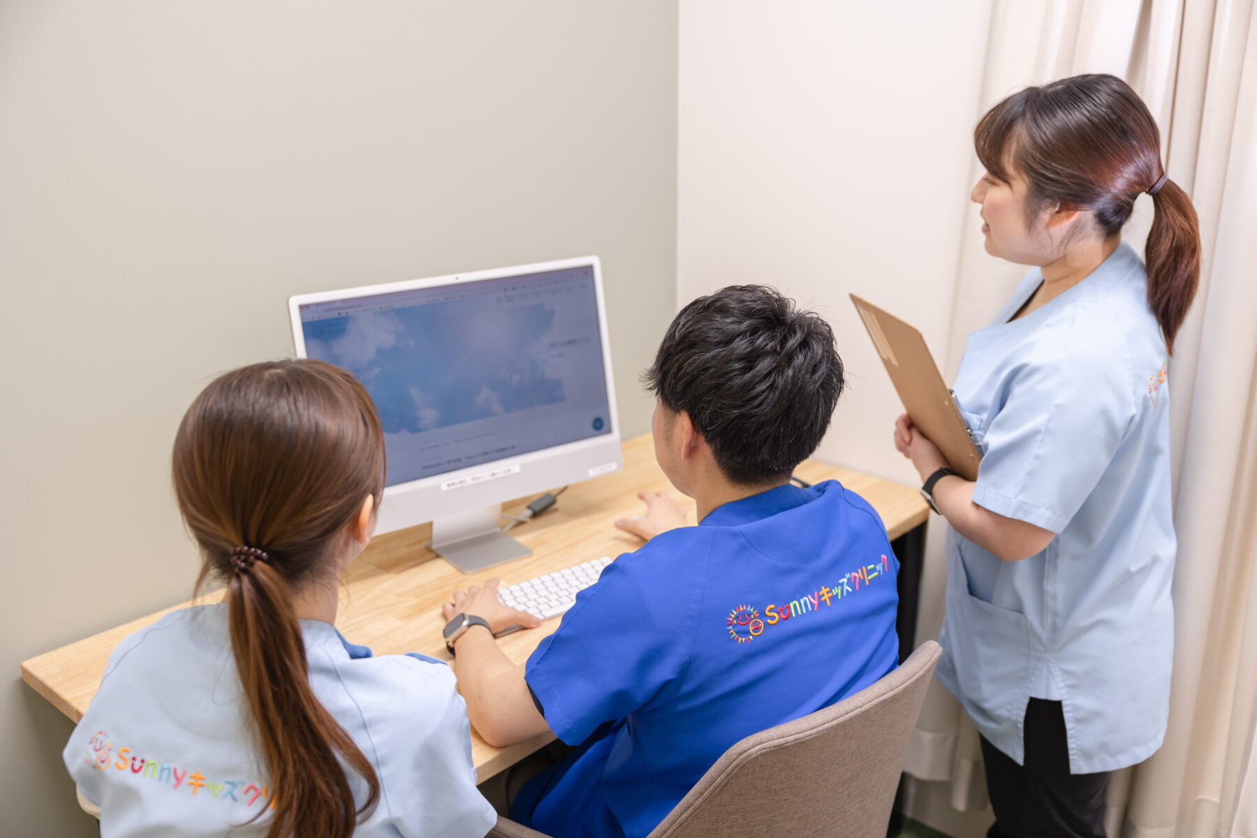 Sunnyタイムとは『Sunnyのためになることをする日』です。普段の忙しい業務の中では、改善したいことや関心事に対して取り組む時間を作れず、そのままになってしまう…Sunnyタイムでは通常業務以外の仕事に取り組むことで、新しい技術や知識の習得、Sunnyがより良くなるためのシステム整備等を行っています。具体的には、【離乳食アドバイザーの資格を取る】【予約システムやWEB問診システムの整備】【季節イベントの準備】などをSunnyタイムで実践しています。