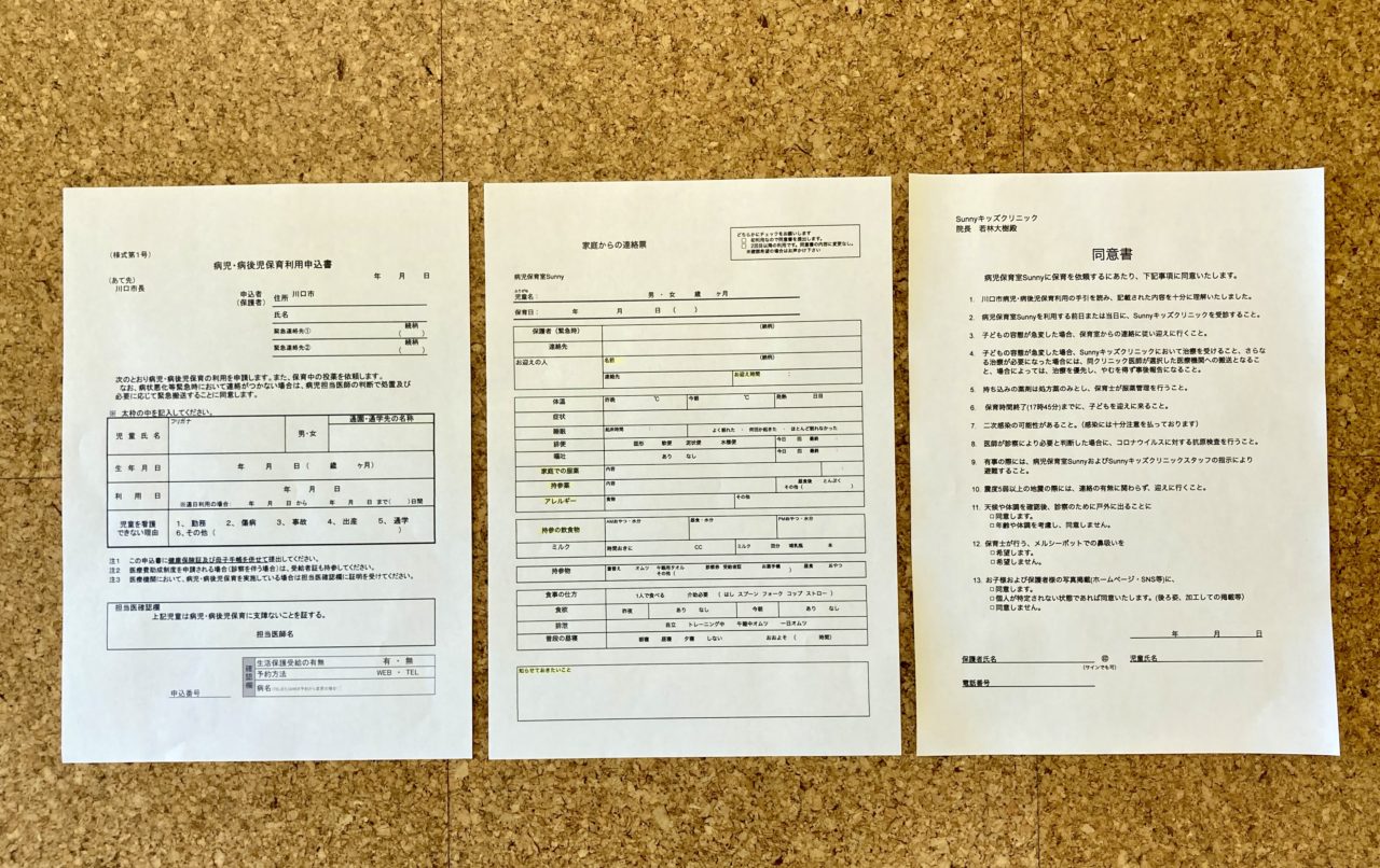 ①川口市へ提出する「病児・病後児保育利用申込書」(右)
