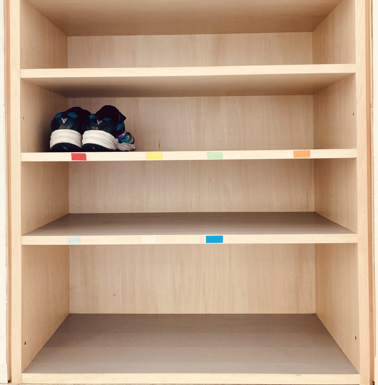 毎日違うお子さまが利用するので、持ち物や名札には色別のテープを貼って、間違いのないようにしています。
