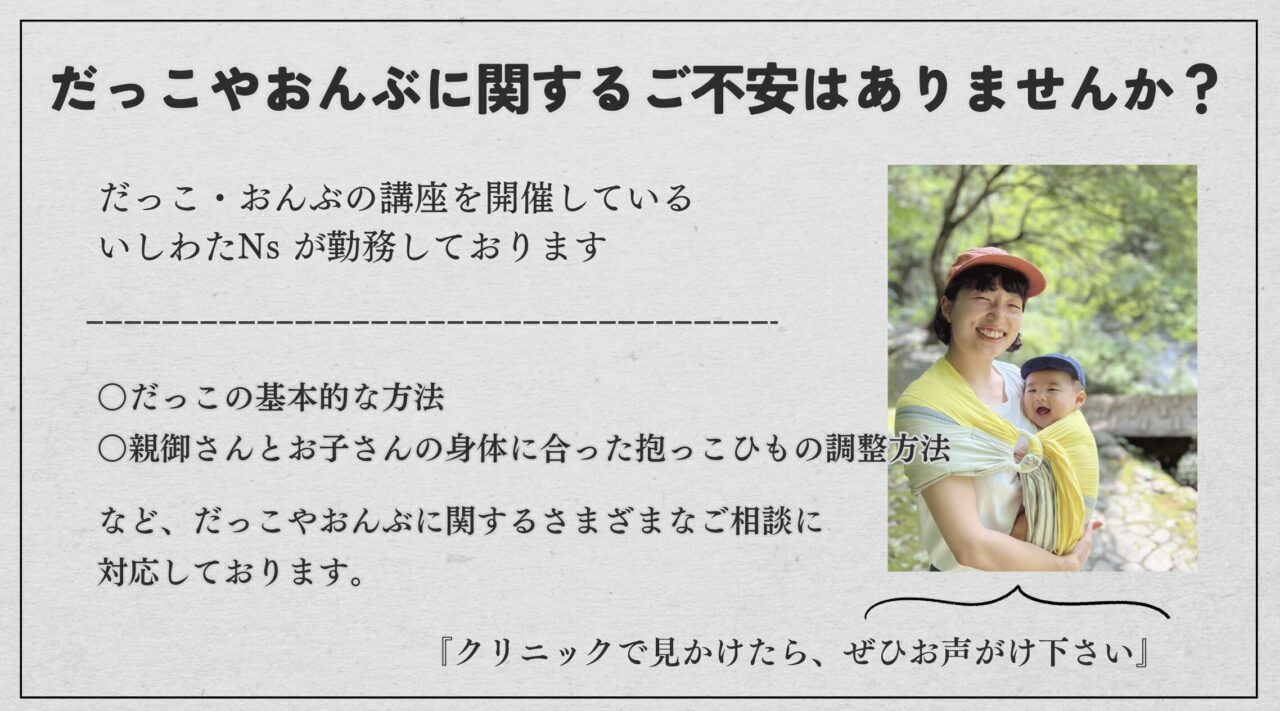 この練習会では、当院のスタッフが、赤ちゃんの成長に合わせた抱っこのポイントを丁寧にレクチャーします。